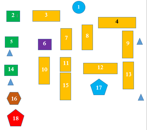 | 5.ගුරු නිවාස 2 | 12.එළිමහන් වේදිකාව | 18.ආපන ශාලාව |